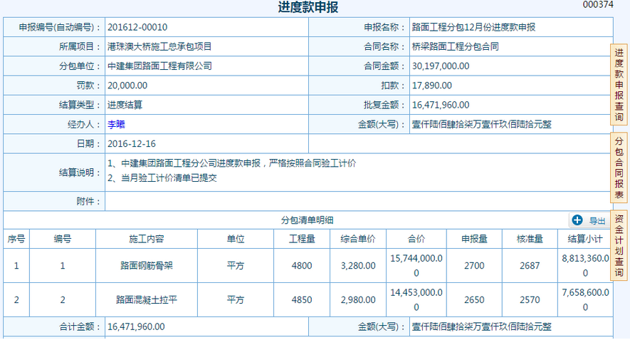2、進(jìn)度款申報(bào):