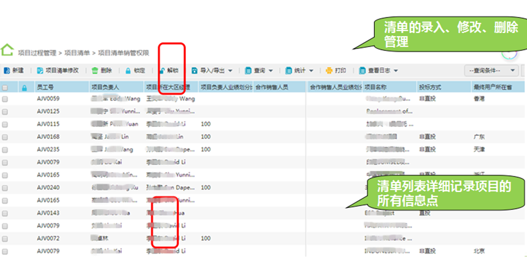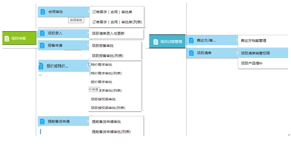 · 項(xiàng)目清單:項(xiàng)目信息通過(guò)項(xiàng)目清單進(jìn)行新增、查詢、修改,完成報(bào)價(jià)、報(bào)備、特價(jià)、項(xiàng)目授權(quán)函、合同簽訂等審批后,需要在項(xiàng)目清單中查詢到目前進(jìn)度。